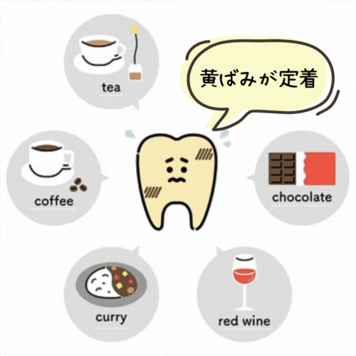 他にも、加齢によって歯の象牙質の新陳代謝が低下することで起こる変色や、